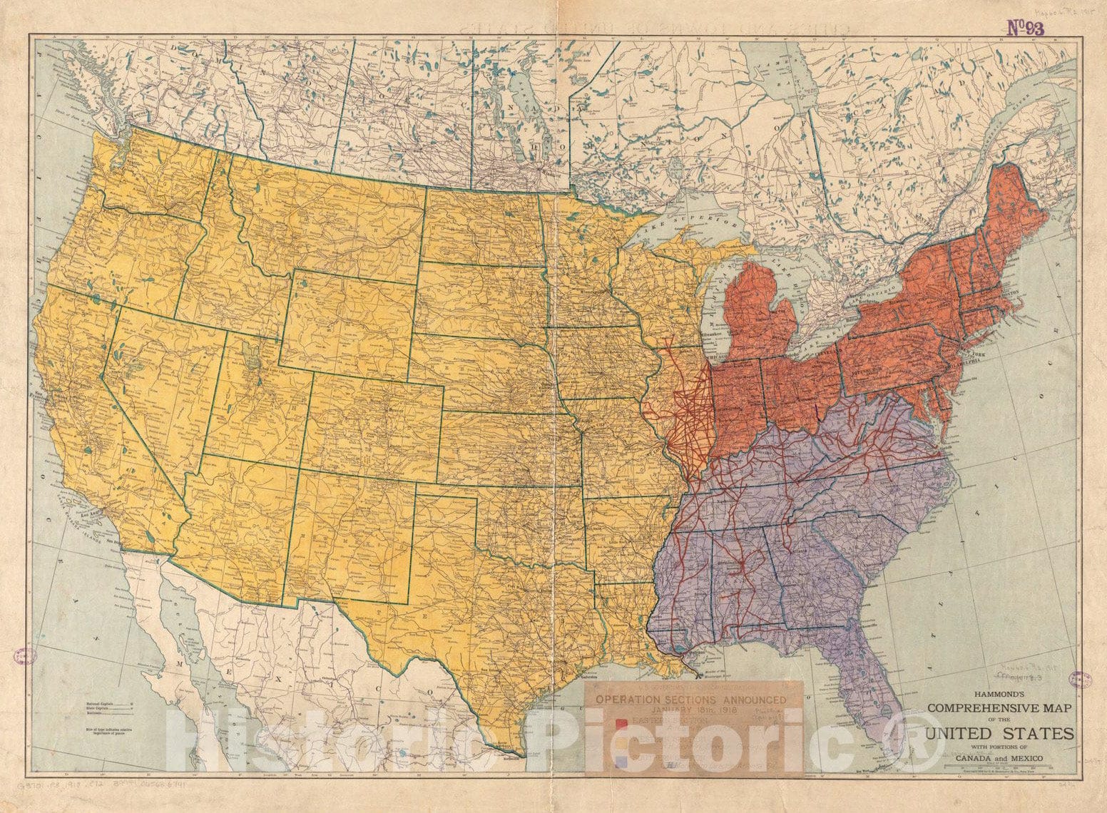 Historical Map, 1918 Hammond's Comprehensive map of The United States with portions of Canada and Mexico, Vintage Wall Art
