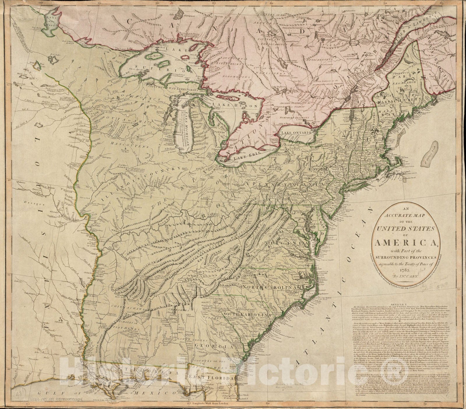 Historical Map, an Accurate map of The United States of America, with pof The Surrounding Provinces Agreeable to The Treaty of Peace of 1783, Vintage Wall Art