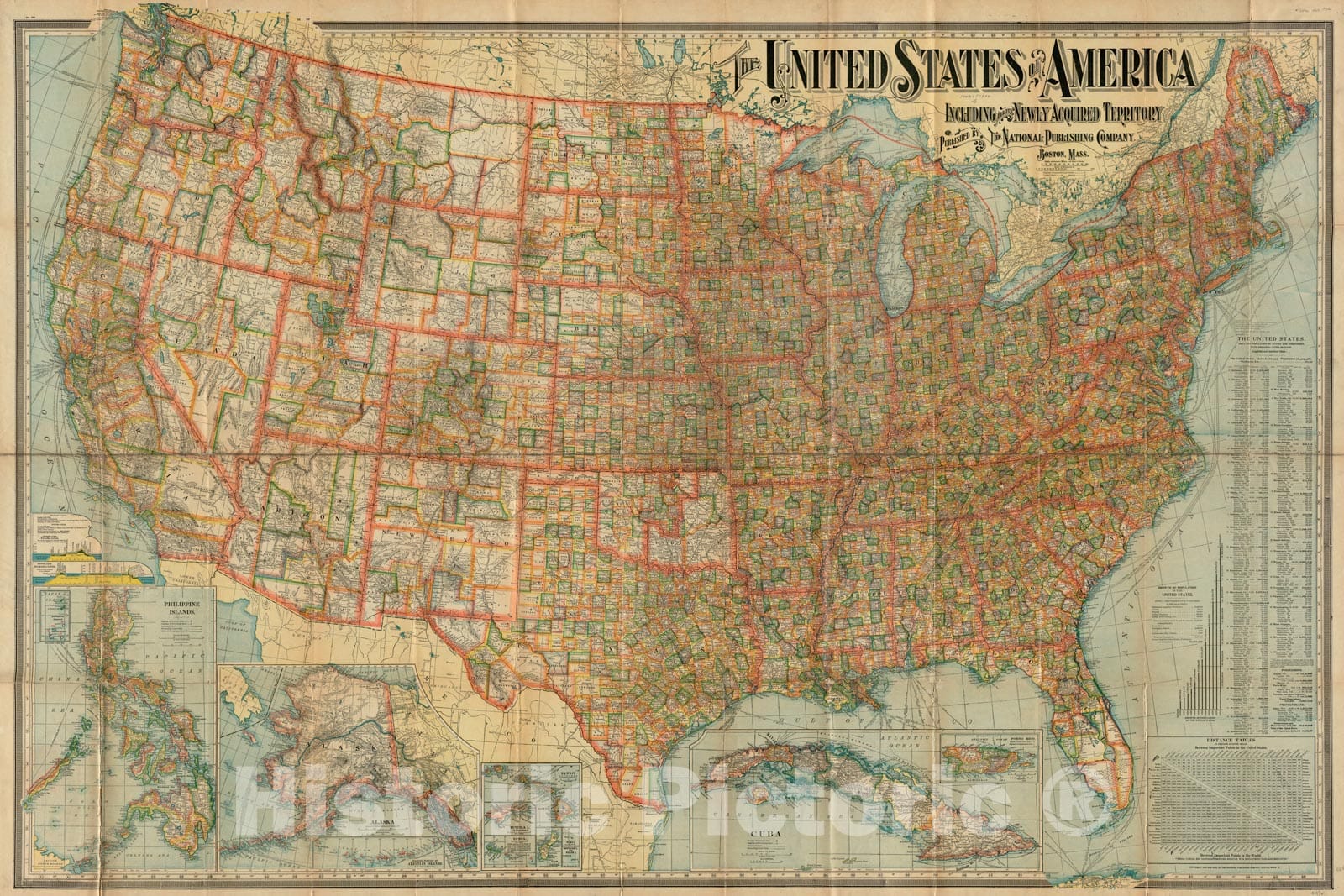 Historical Map, ca. 1902 The United States of America : including all its newly acquired territory, Vintage Wall Art