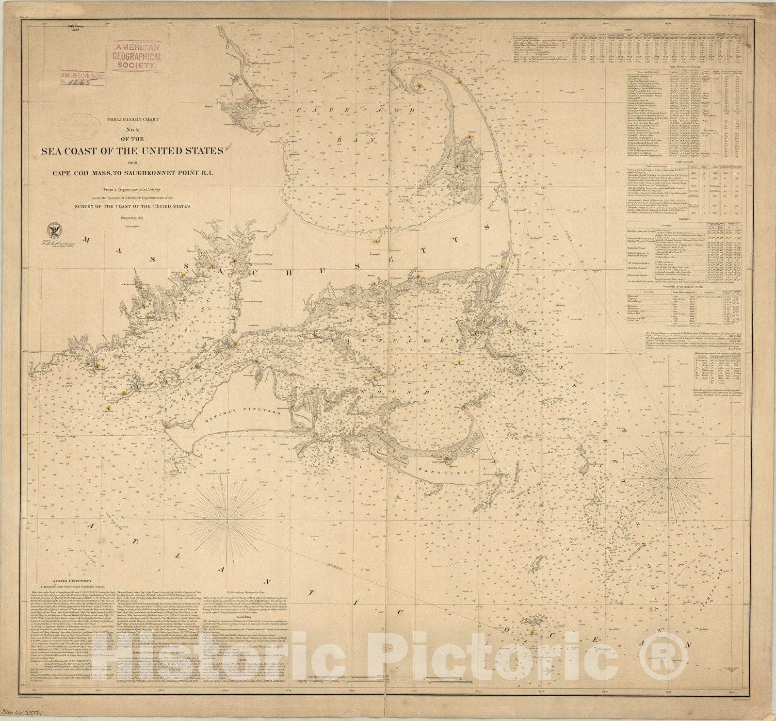 Historic Map : Cape Cod, Massechusetts 1857, Preliminary chart no. 4 of the sea coast of the United States from Cape Cod Mass. to Saughkonnet Point R.I. , Antique Vintage Reproduction