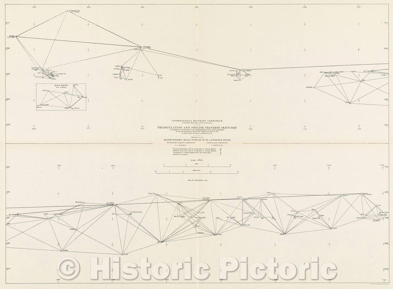 Historic Map : International Boundary Commission United States and Canada Triangulation and precise traverse sketches to accompany the report of the commissioners, 1924 , Vintage Wall Art