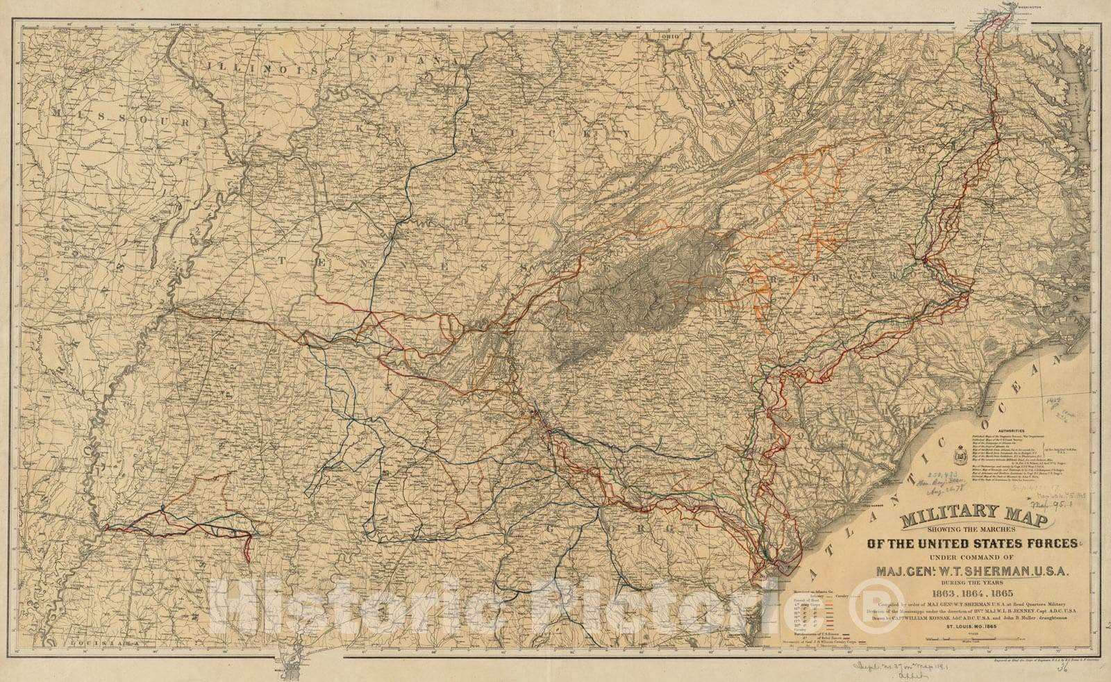 Military map showing the marches of the United States forces under command of Maj. Genl. W.T. Sherman, U.S.A., during the years 1863, 1864, 1865
