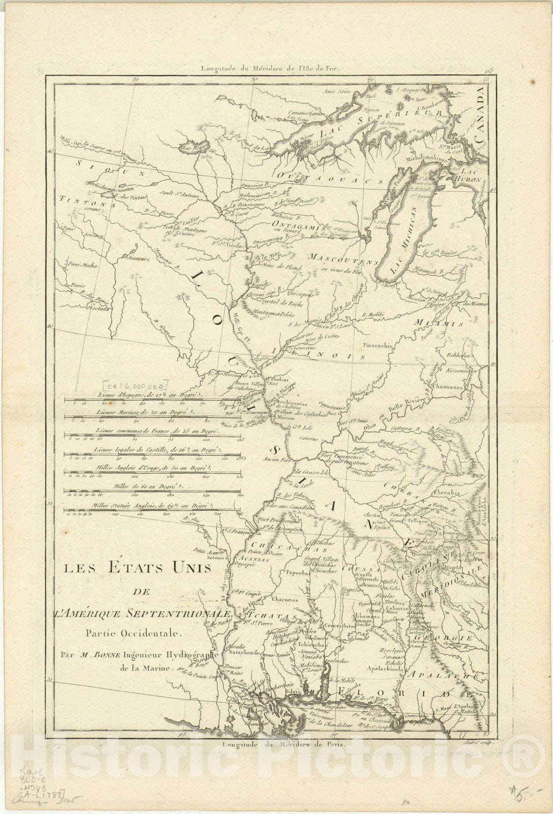 Map : United States 1788, Les Etats Unis de l'Amerique septentrionale, partie occidentale. , Antique Vintage Reproduction