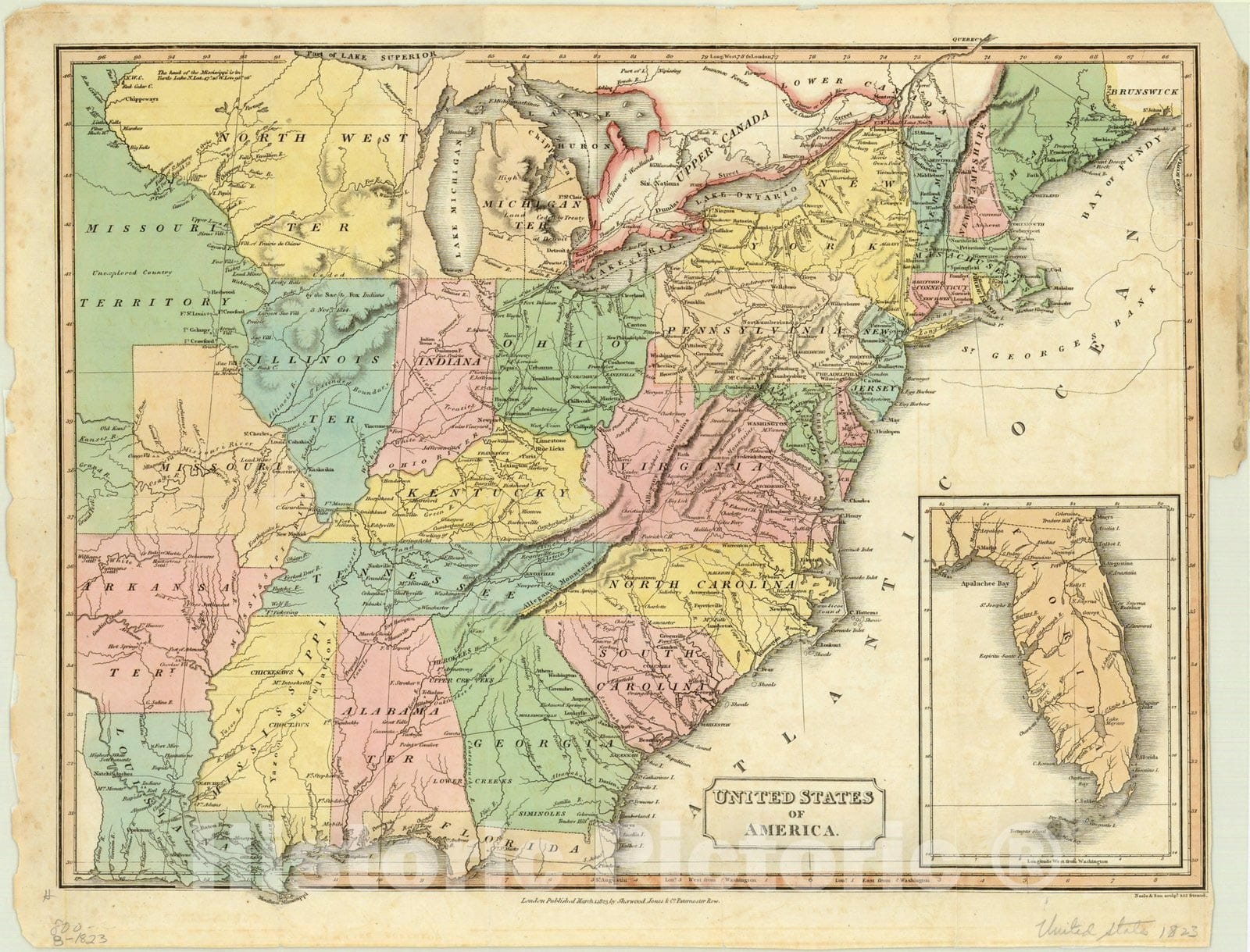 • Map : United States 1823, United States of America, Antique Vintage Reproduction