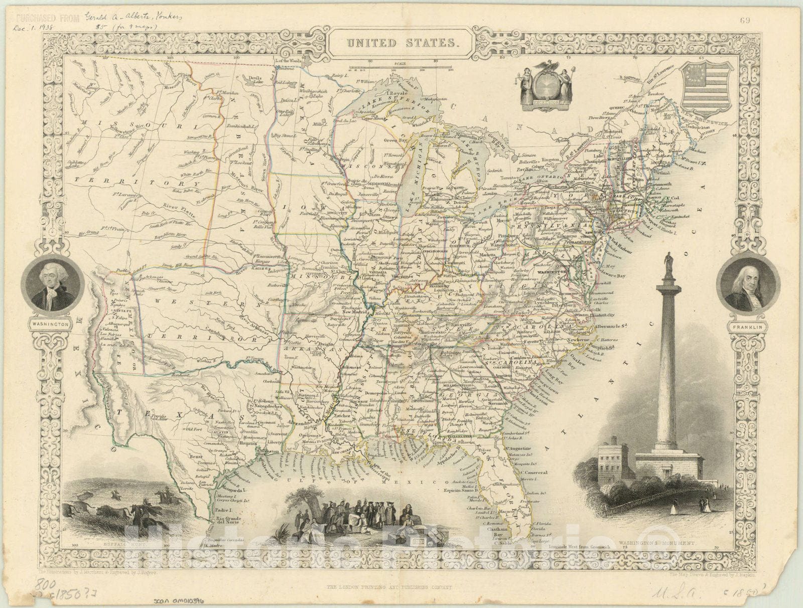 • .Map : United States 1851, United States , Antique Vintage Reproduction