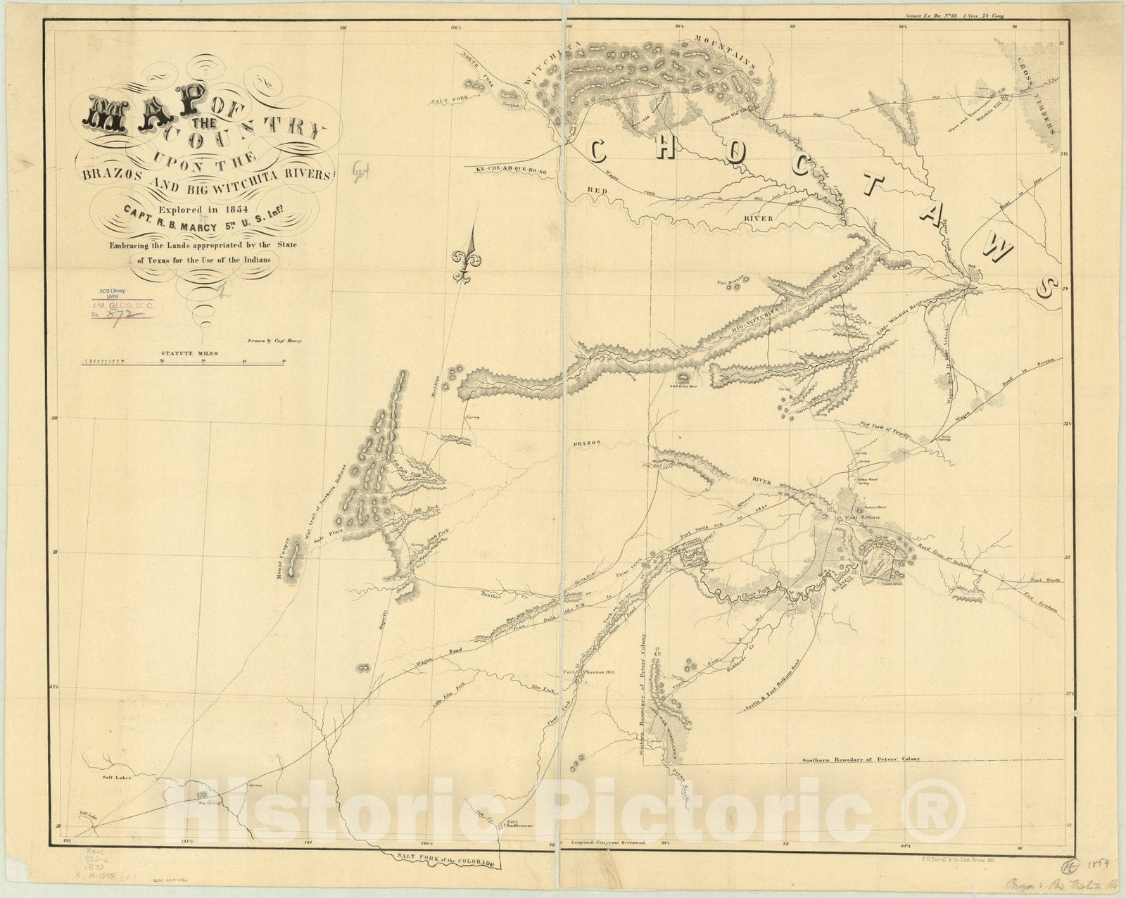 Map of the country upon the Brazos and Big Wichita Rivers : explored in 1854, embracing the lands appropriated by the state of Texas for the use of the Indians / drawn by Capt. Marcy