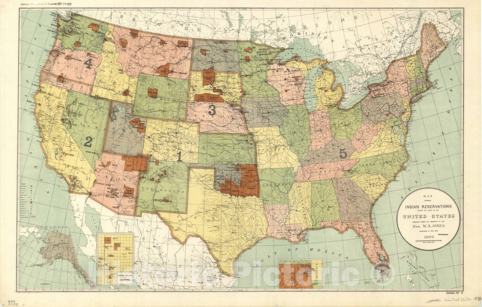Map : United States 1898, map showing Indian reservations, Map showing Indian reservations : within the limits of the United States , Antique Vintage Reproduction