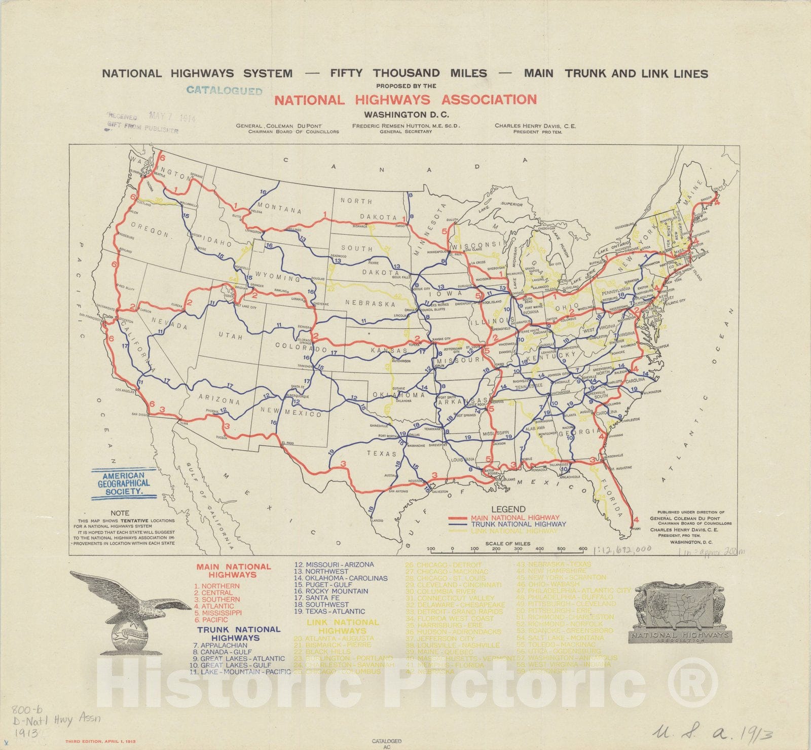 National highways system -- fifty thousands miles -- main trunk and link lines proposed by the National Highways Association / published under direction of General Coleman du Pont.