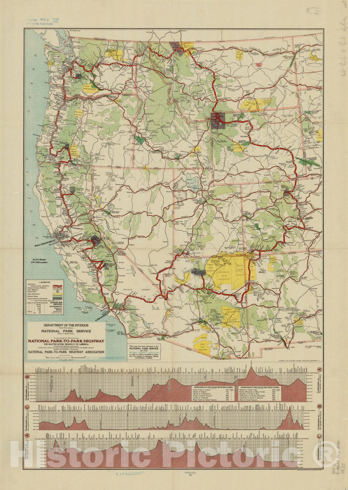 Map of the National Park-to-Park Highway : the master scenic highway of America showing every city, town, village and hamlet throughout its entire length / as developed by the National Park-to-Park Highway Association ; John C. Mulford cheif cartograp