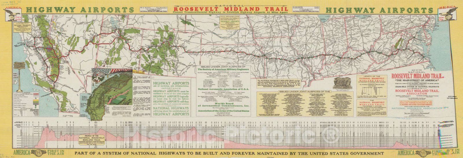 Map of the National Roosevelt Midland Trail : |"the Main Street of America|", showing every city, town, village, and hamlet throughout its entire length and connections with a 150,000-mile system of national highways proposed by the Roosevelt Midland T