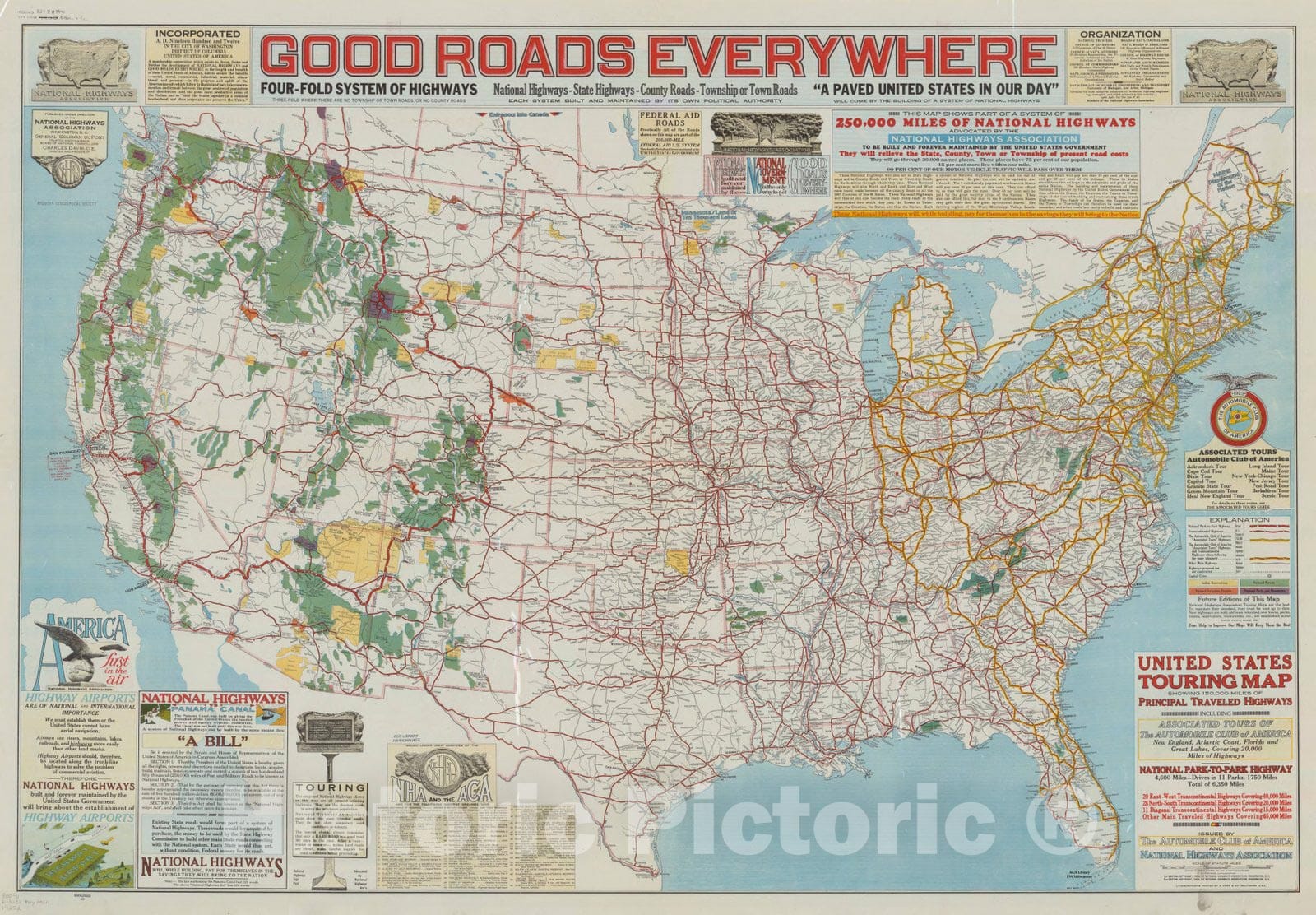 United States touring map, showing 150,000 miles of principal traveled highways, including Associated Tours of the Automobile Club of America ... National park--to--park highway / Issued by the Automobile Club of America and National Highways Associati