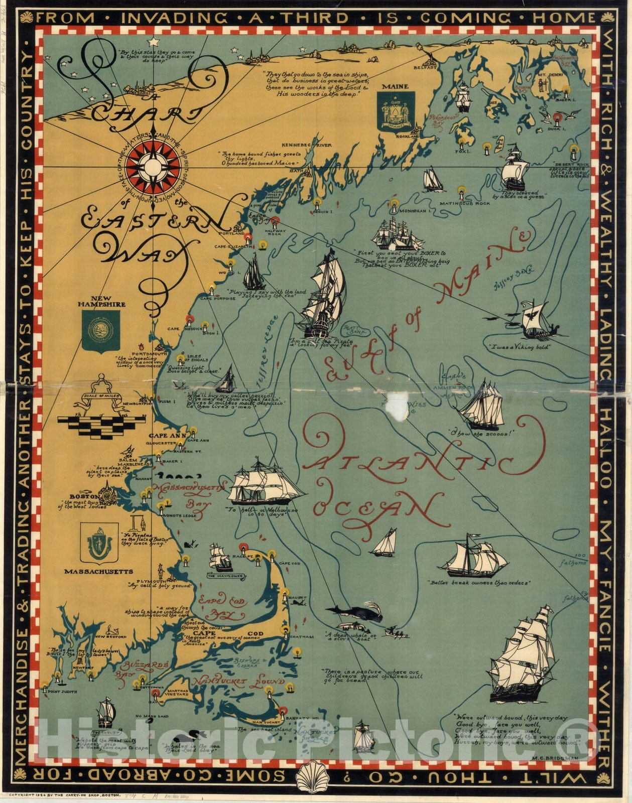 • .Map : United States 1926, A Chart of the Eastern way : and the spirit of God moved upon the face of the waters, Antique Vintage Reproduction