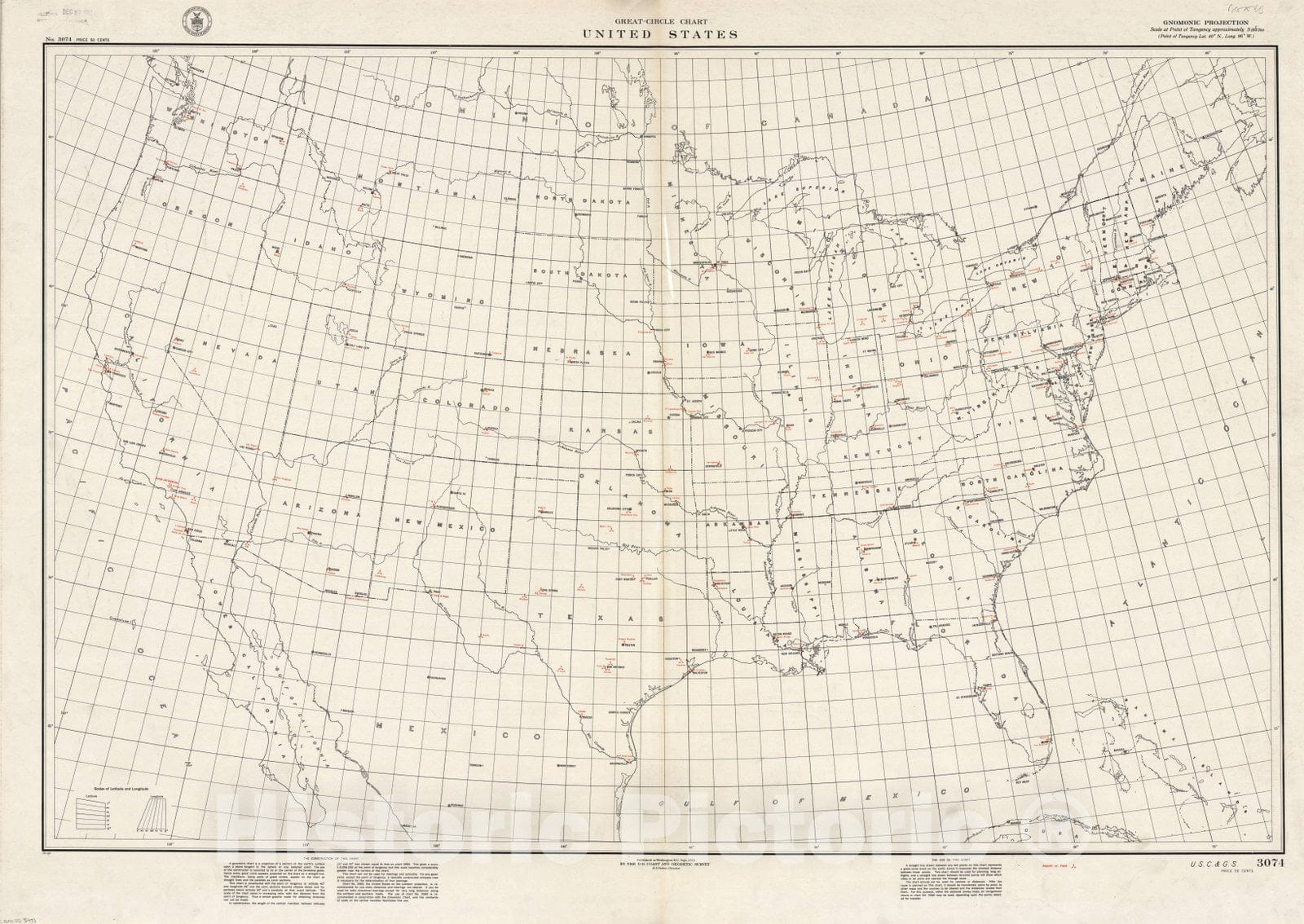 • Map : United States 1934, United States, great-circle outline chart , Antique Vintage Reproduction