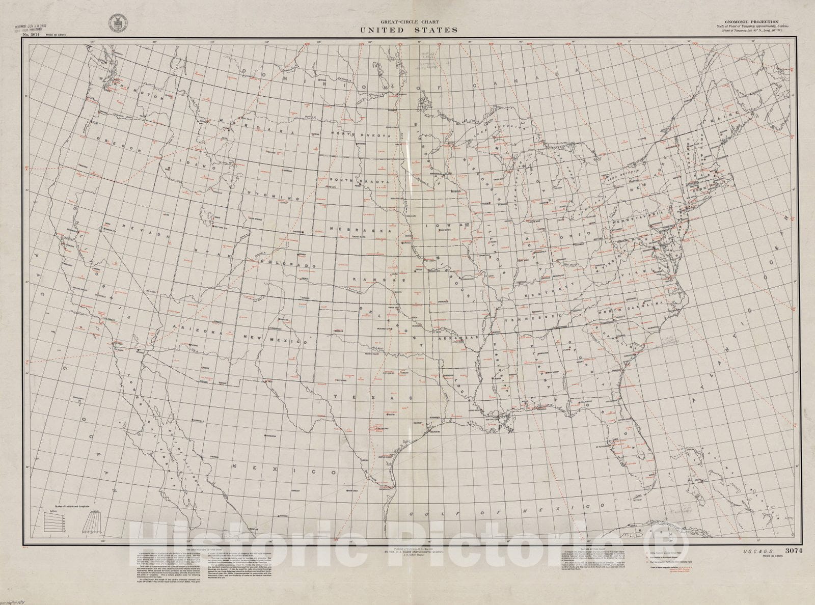 Map : United States 1941, Great-circle chart, United States , Antique Vintage Reproduction