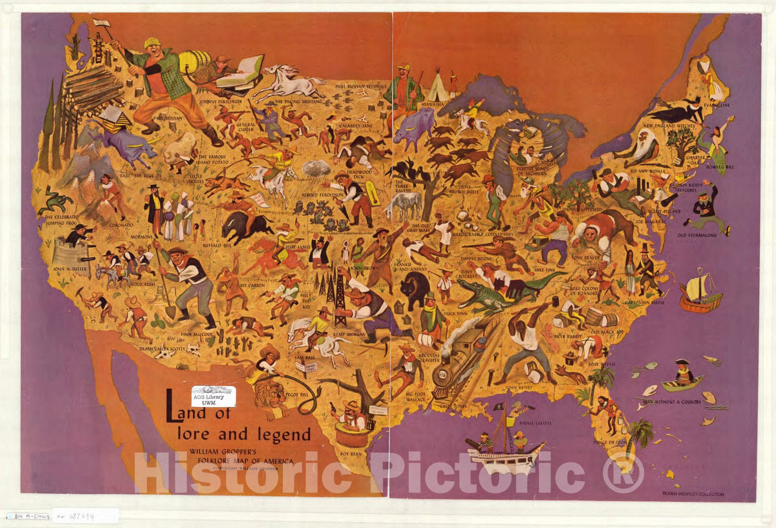 Map : United States 1946, Land of lore and legend : William Gropper's folklore map of America , Antique Vintage Reproduction