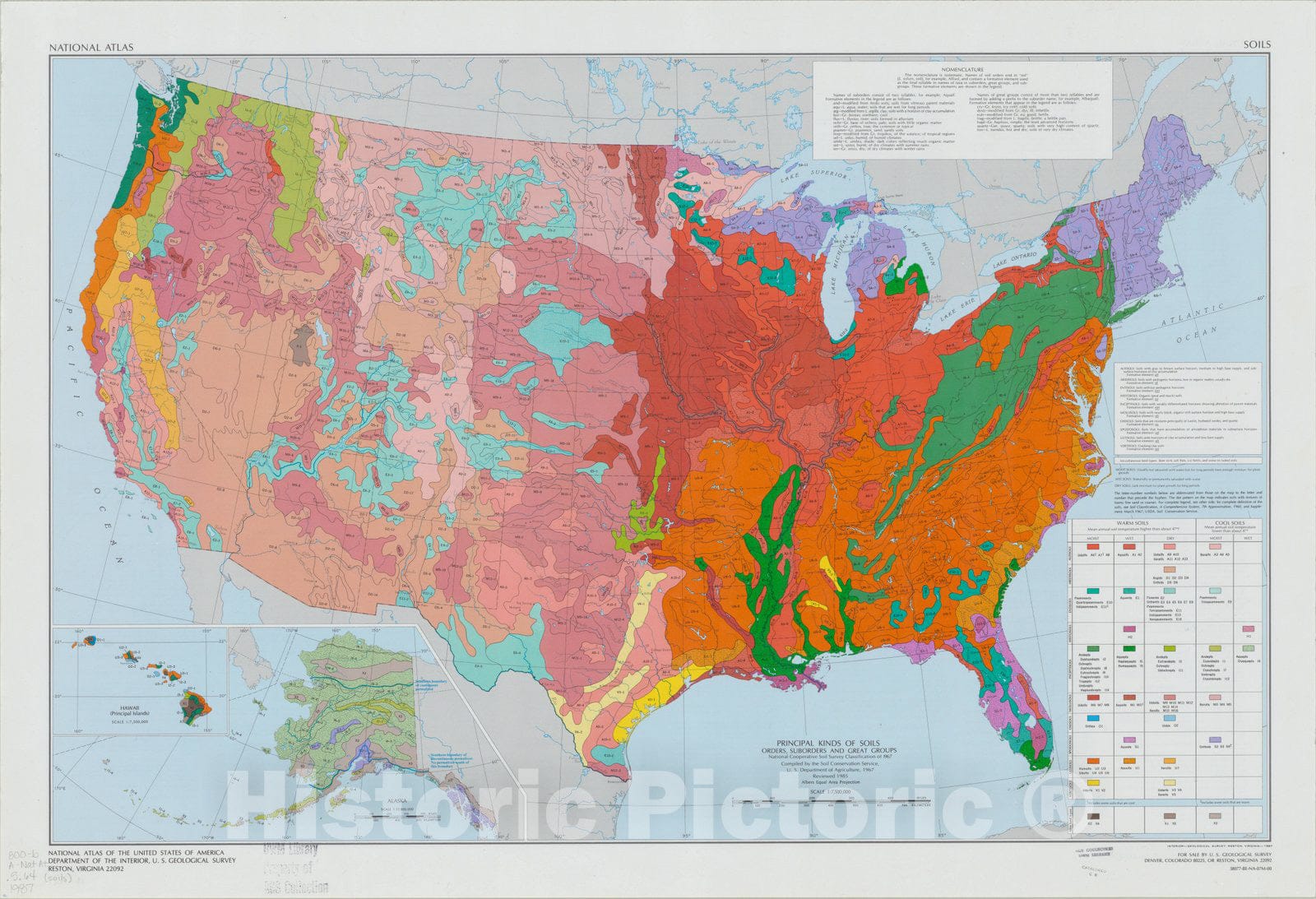 Map : United States 1985, National atlas. 38077-BE-NA-07M-00, Soils : [United States] : principal kinds of soils, orders, suborders and great groups, 1967