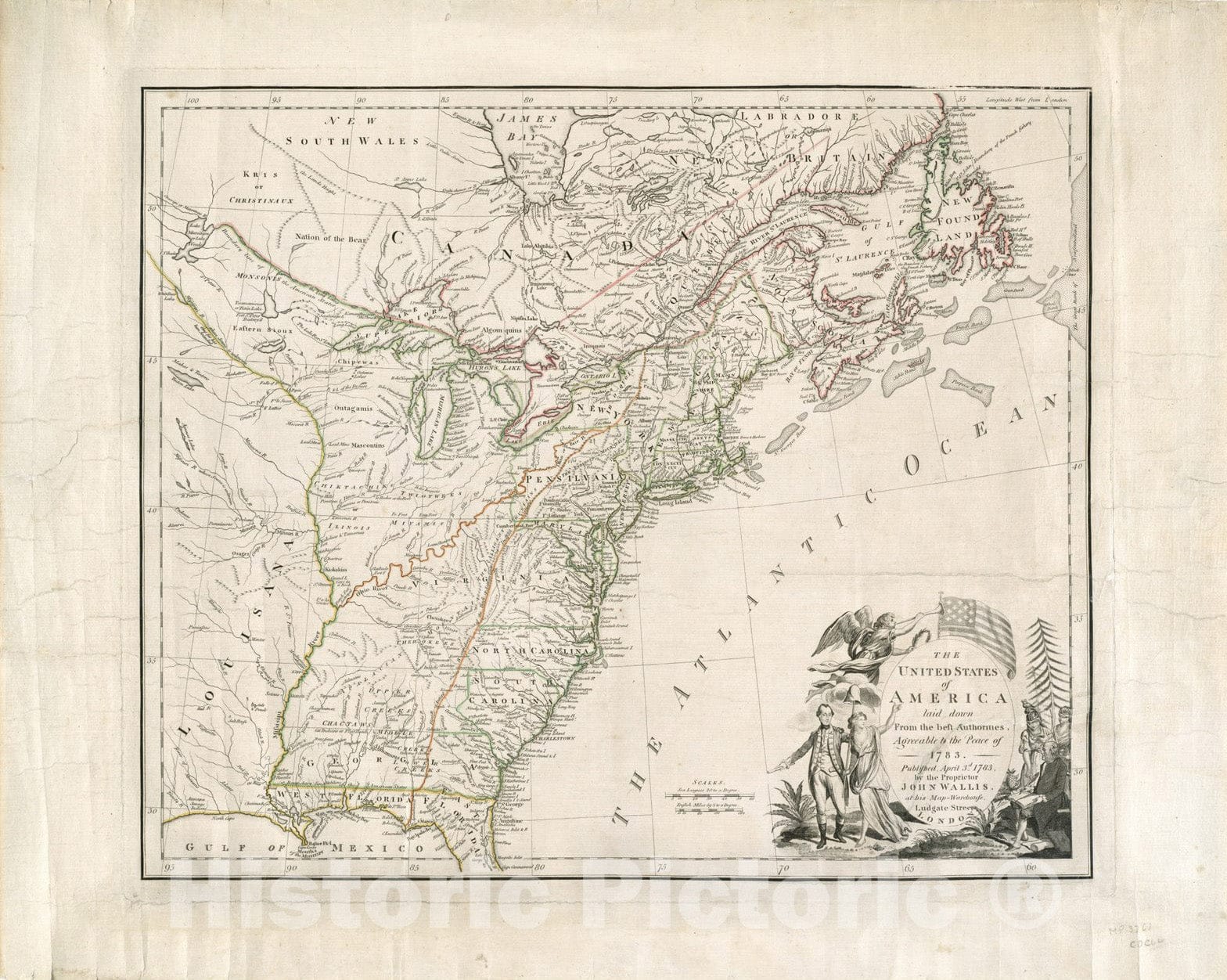 Historical Map, The United States of America Laid Down from The Best Authorities, Agreeable to The Peace of 1783, Vintage Wall Art