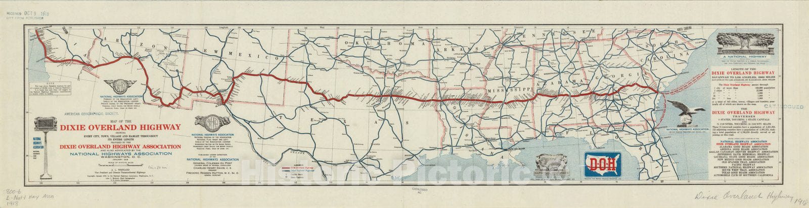 Historic Map : United States, southern 1918, Map of the Dixie Overland Highway : showing every city, town, village and hamlet throughout its entire length , Antique Vintage Reproduction