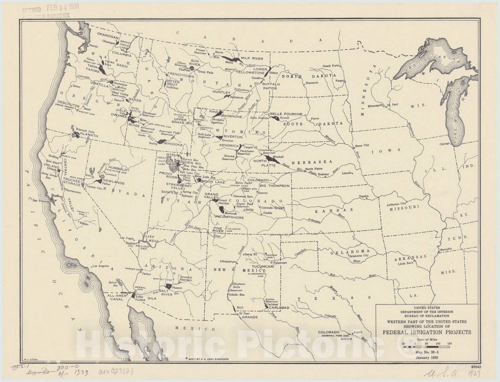 United States Department of the Interior,Bureau of Reclamation, western part of the United States showing location of federal irrigation projects map no. 39-5