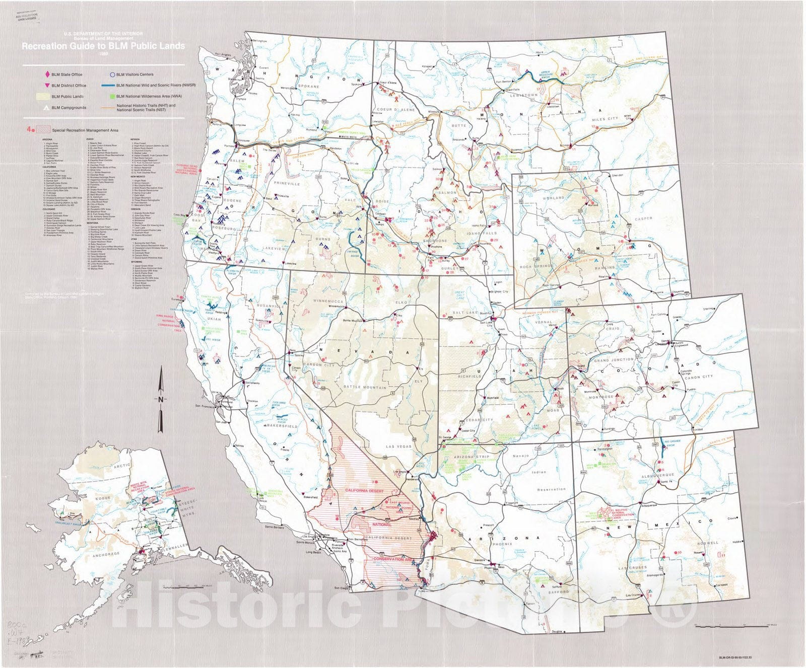 Map : United States, western 1989 2, Recreation guide to BLM public lands , Antique Vintage Reproduction