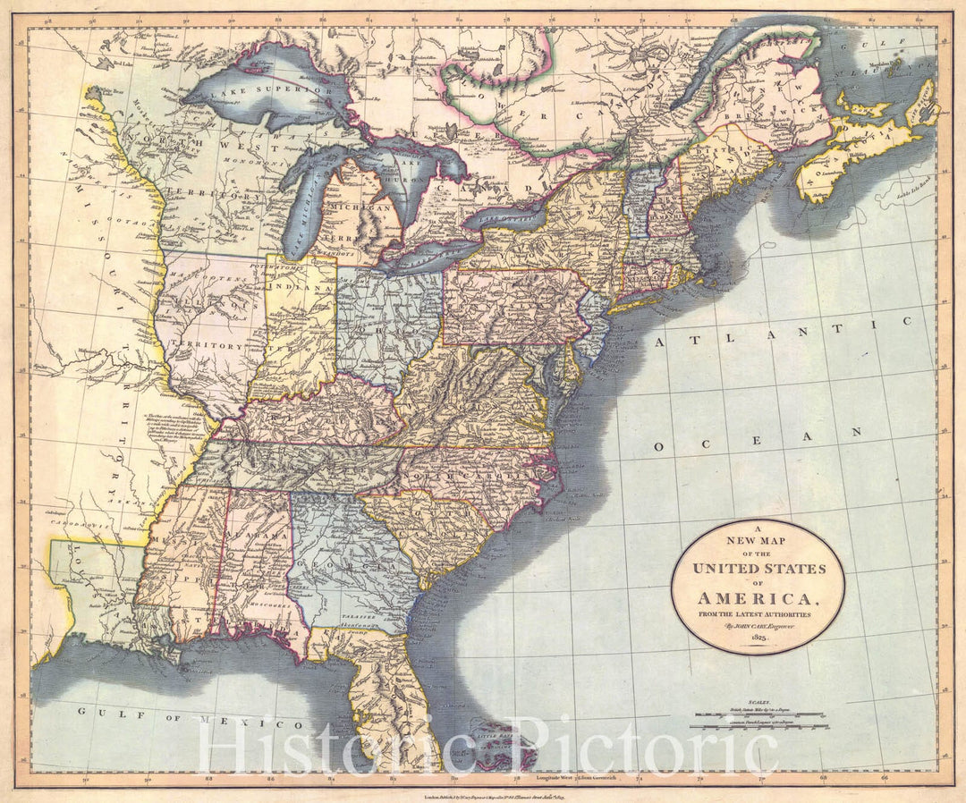 Historic Map : 1820 United States of America Compiled from the Latest & Best Authorities : Vintage Wall Art