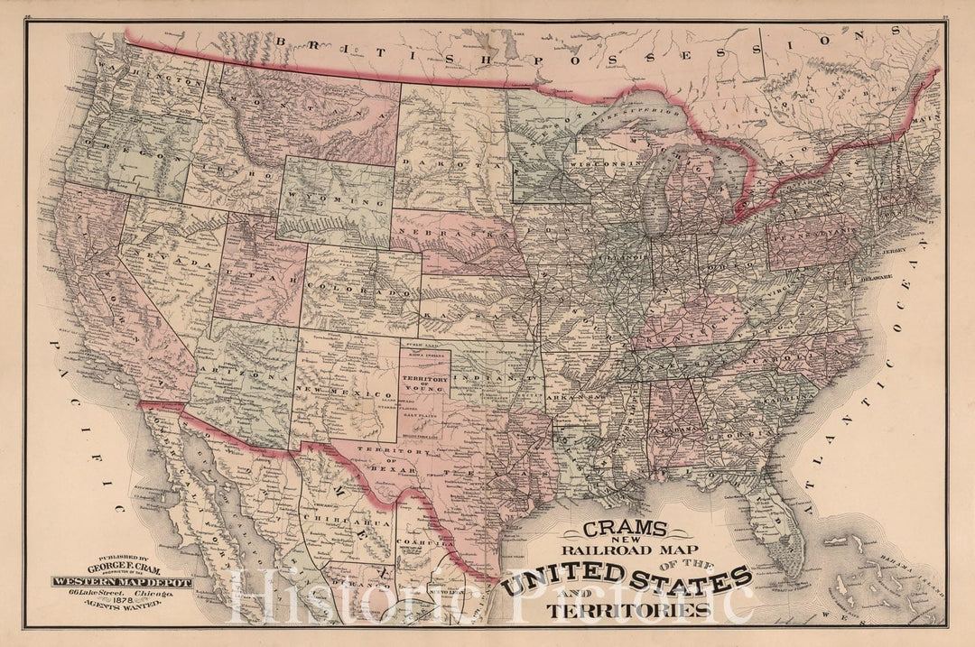 Historic Map : United States and Territories., 1878, Vintage Wall Art