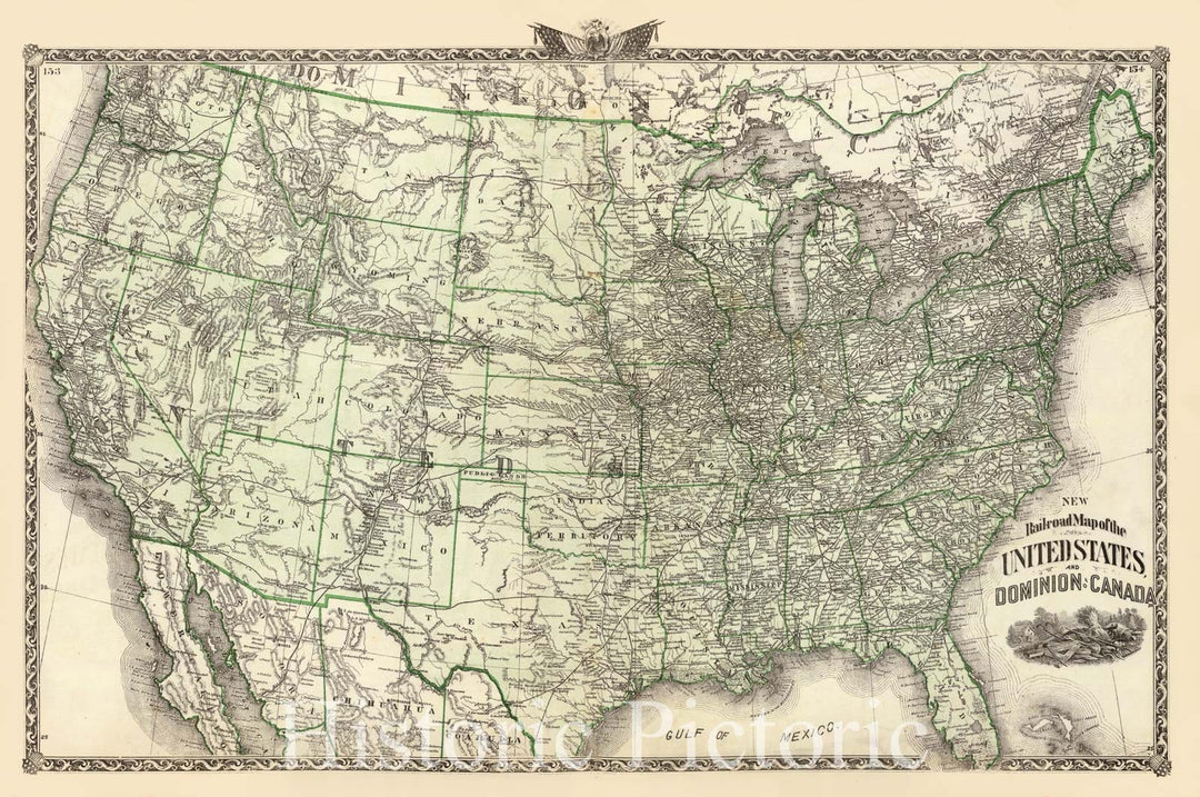 Historic Map : 1876 New railroad map of the United States, and Dominion of Canada. - Vintage Wall Art