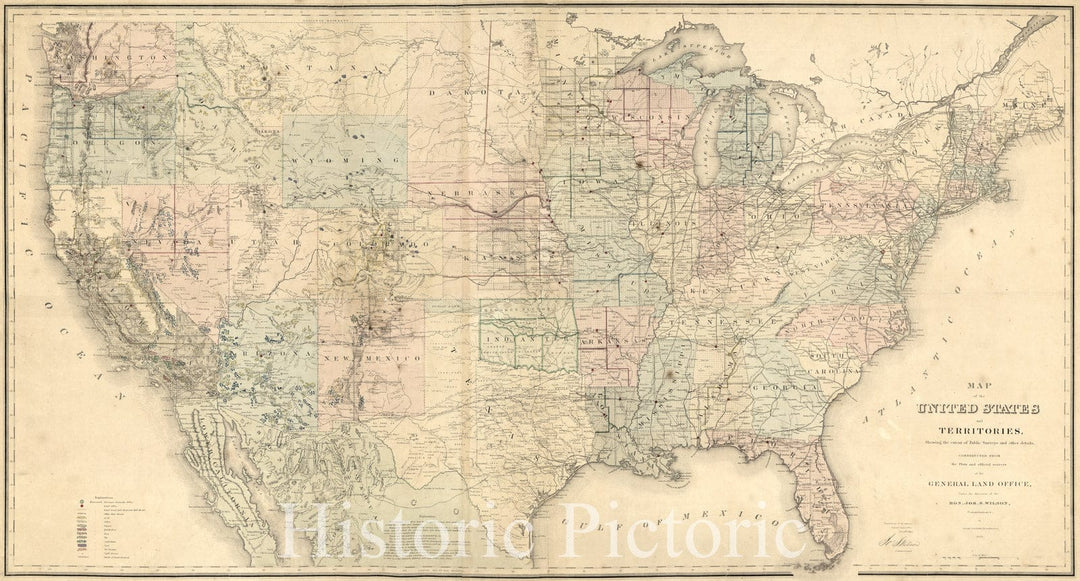 Historic 1868 Map - Map of The United States and Territories, Showing The Extent of Public surveys and Other Details