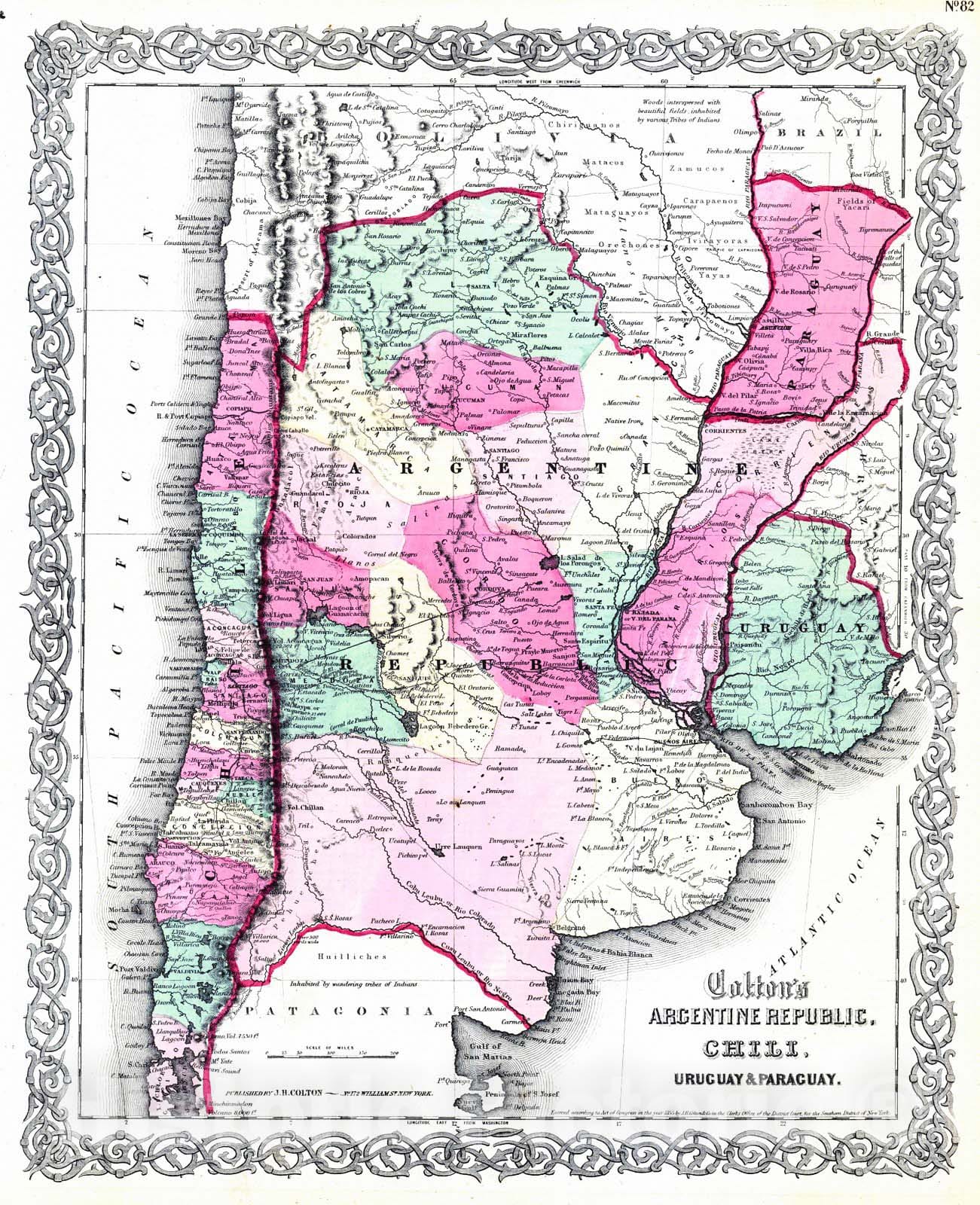 Historic Map : 1855 Colton's Arentine Republic, Chili, Uruguay and Paraguay : Vintage Wall Art