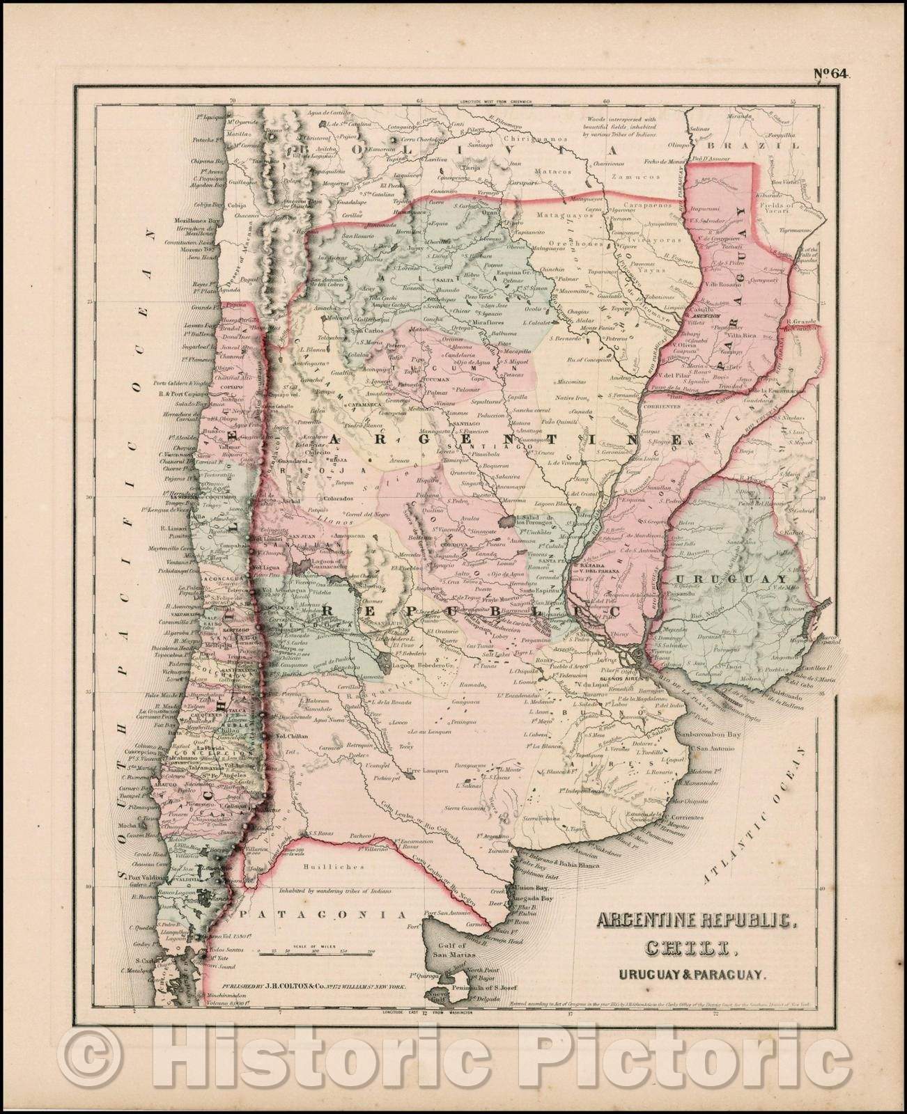 Historic Map - Argentine Republic, Chili, Uruguay & Paraguay, 1855, Joseph Hutchins Colton v2