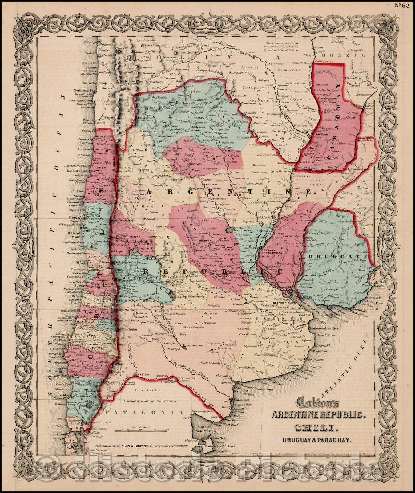 Historic Map - Argentine Republic, Chili, Uruguay & Paraguay, 1855, Joseph Hutchins Colton v1