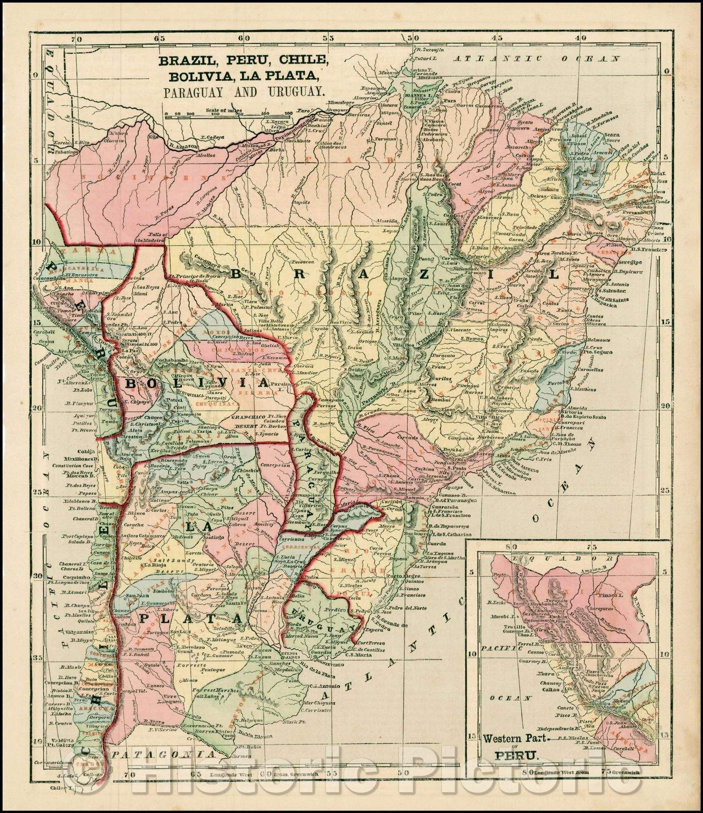 Historic Map - Brazil, Peru, Chile, Boliva, La Plata, Parguay and Uruguay/Map of the southern part of South America, by Charles Morse.< / p>, 1856 - Vintage Wall Art