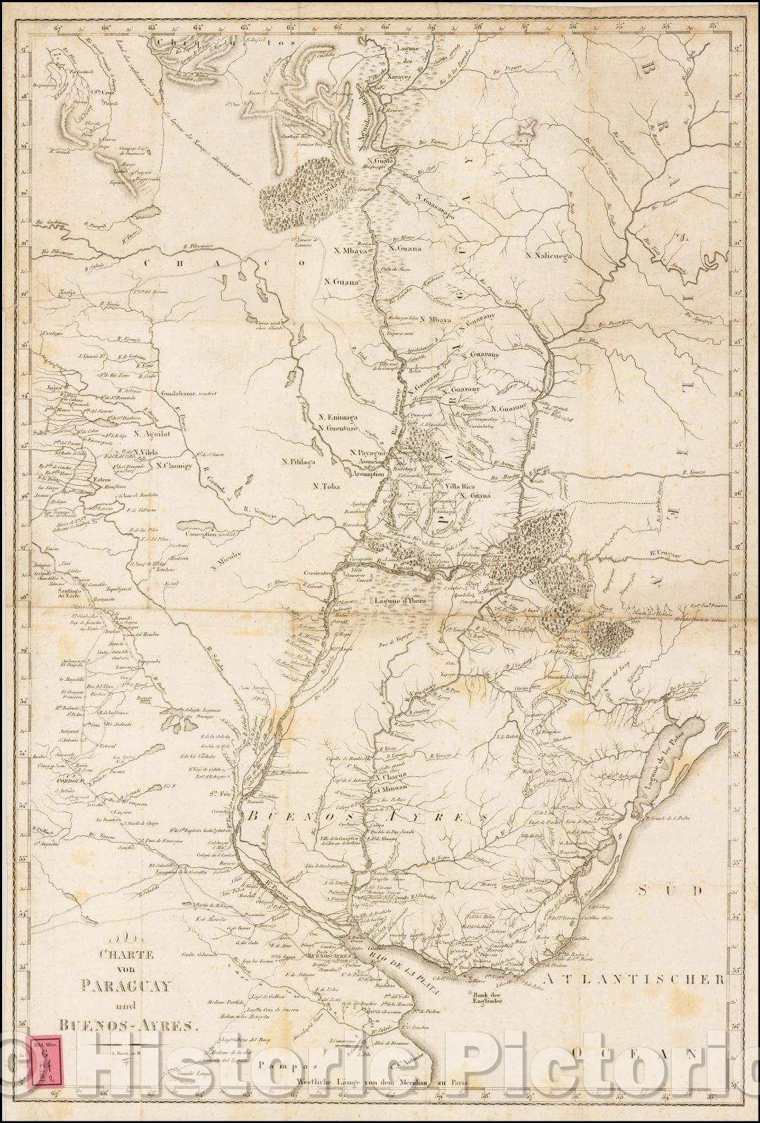 Historic Map - Charte von Paraguay und Buenos-Ayres. / Paraguay, northern Argentina and Uruguay, 1812, A. Buerck - Vintage Wall Art