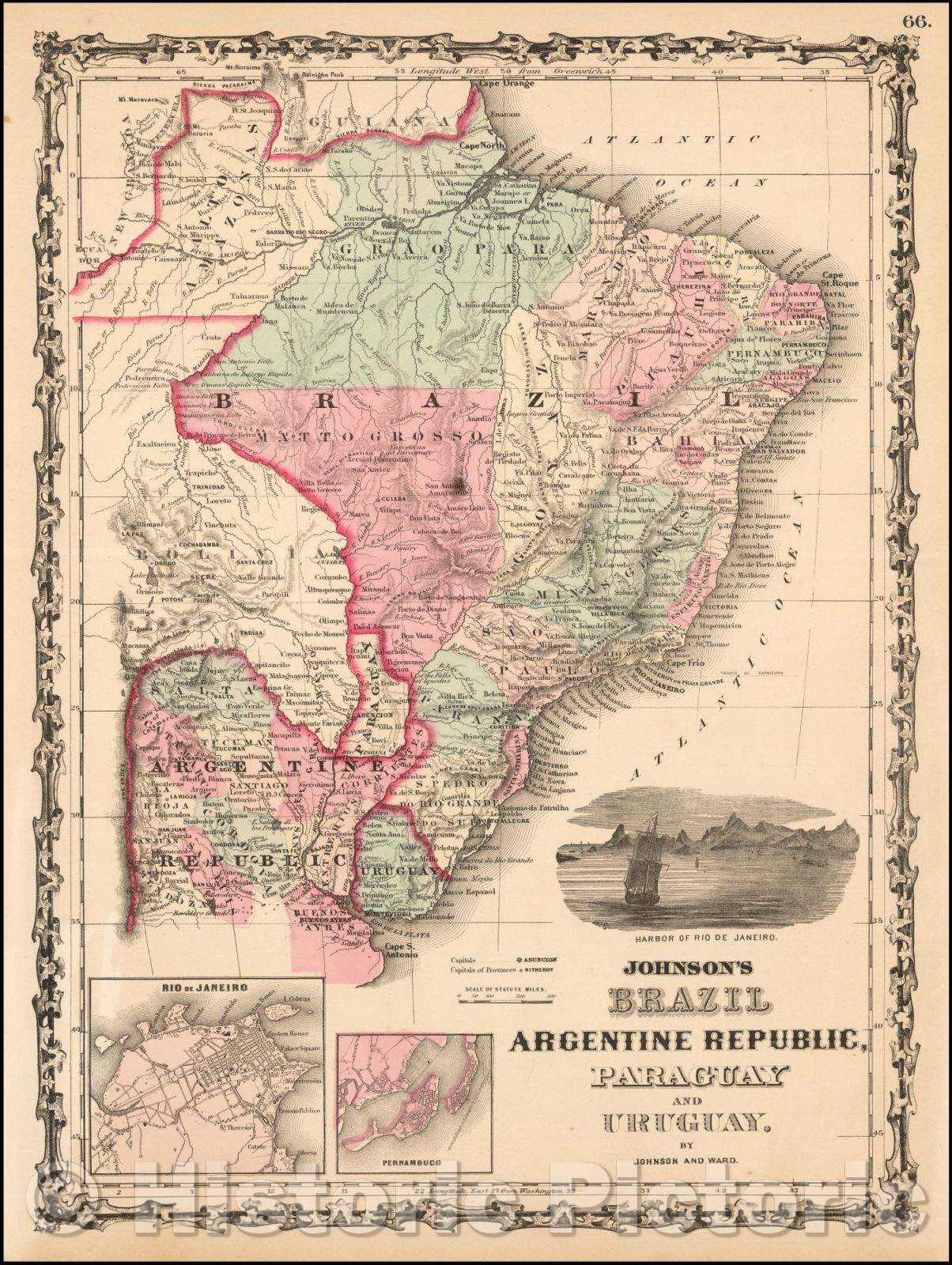 Historic Map - Johnson's Brazil, Argentine Republic, Paraguay and Uruguay, 1862, Benjamin P Ward - Vintage Wall Art