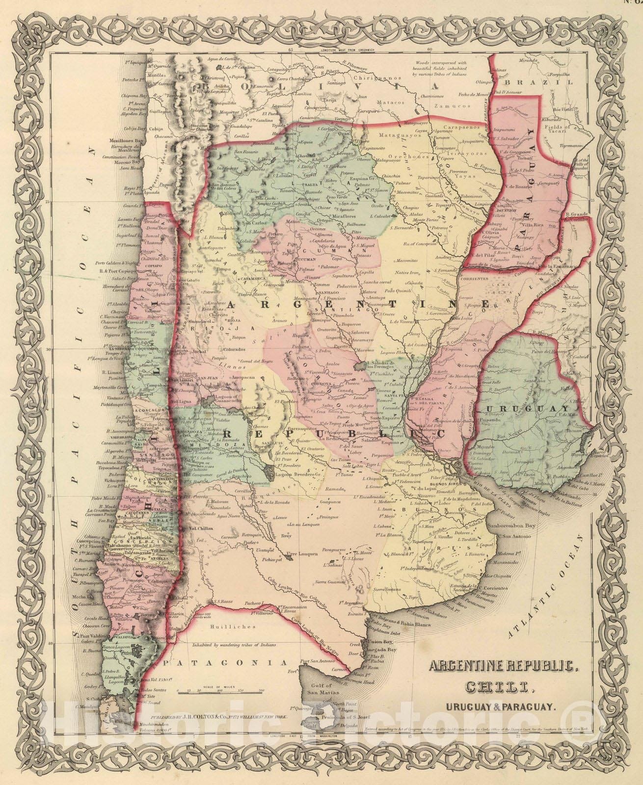 Historic Map : National Atlas - 1857 Argentine Republic, Chili, Uruguay & Paraguay. - Vintage Wall Art