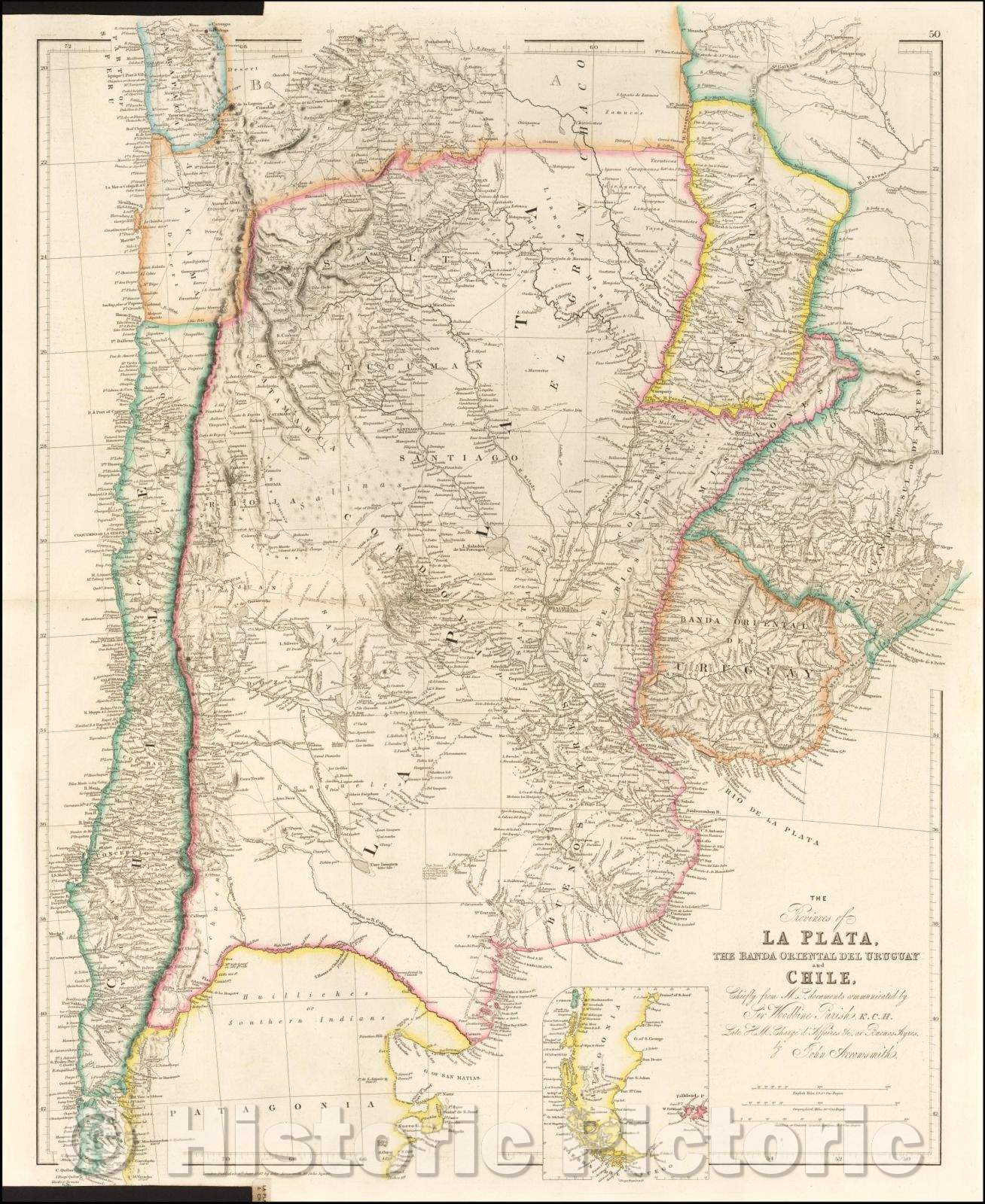 • .Historic Map - The Provinces of La Plata, The Banda Oriental Del Uruguay and Chile, 1842, John Arrowsmith - Vintage Wall Art