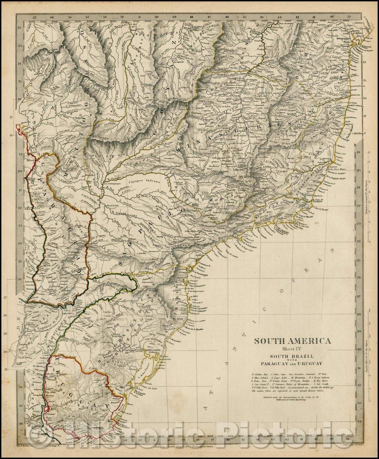 Historic Map - South America Sheet IV South Brazil with Paraguay and Uruguay, 1849, SDUK - Vintage Wall Art