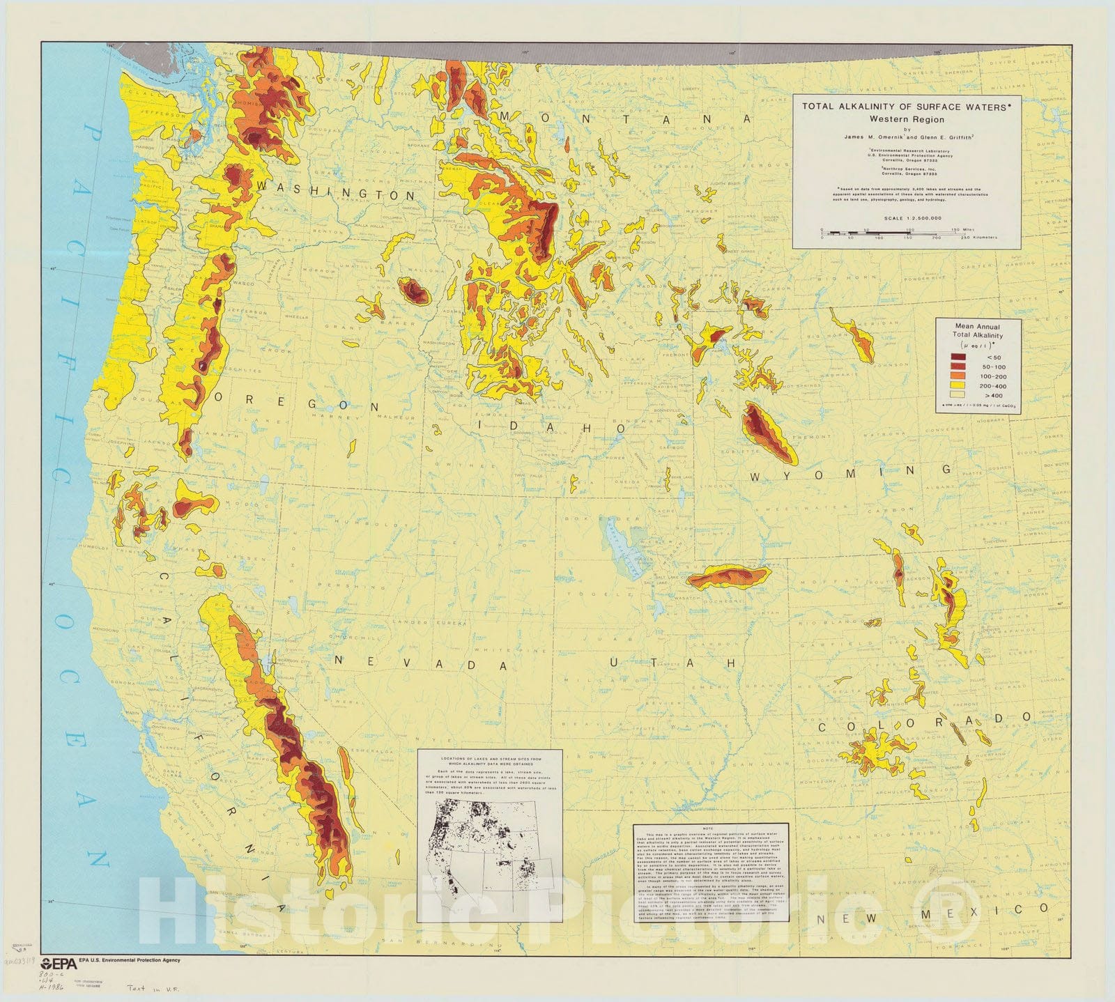 • Map : United States, western 1986, Total alkalinity of surface waters : Western Region , Antique Vintage Reproduction