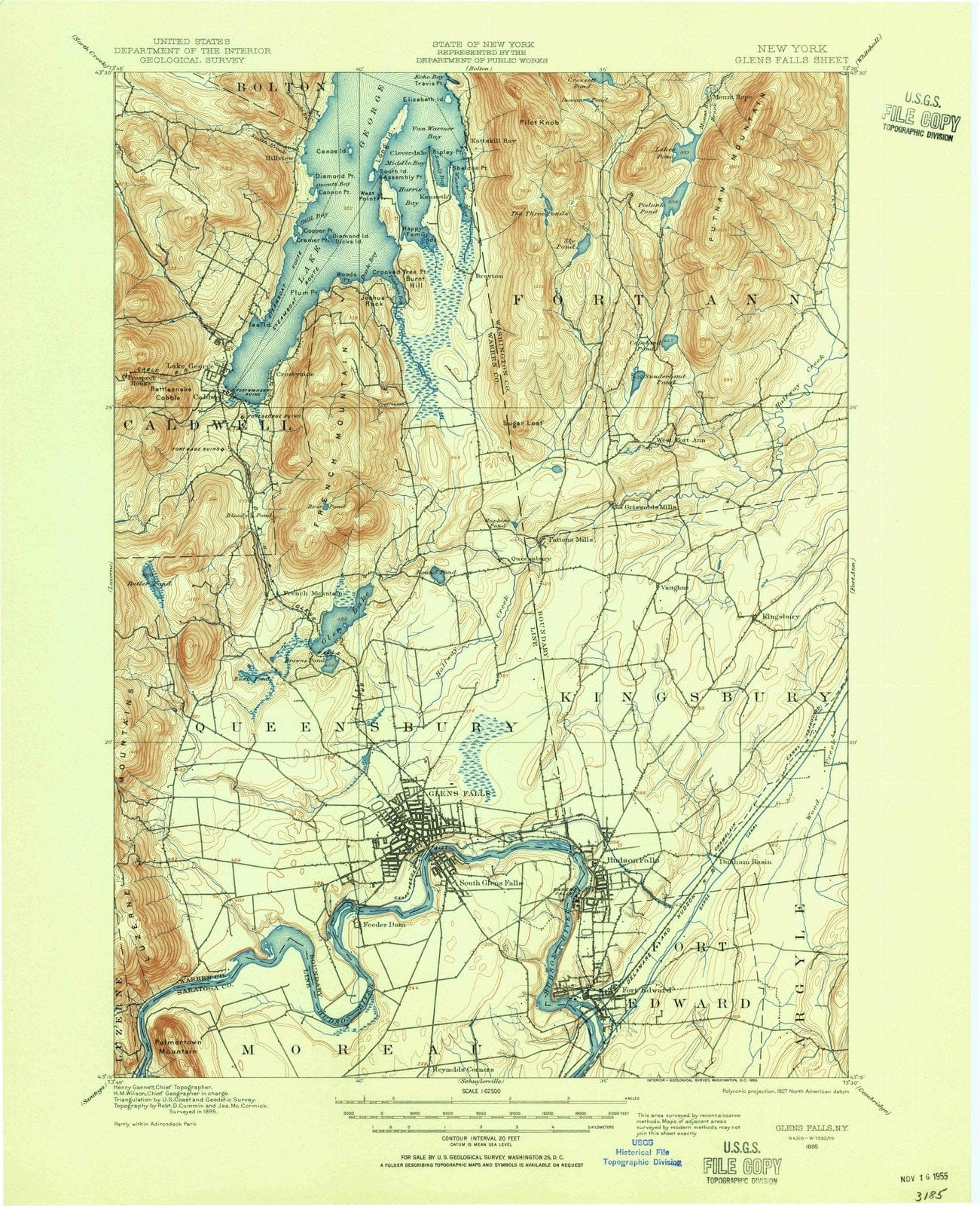 1895 Glens Falls, NY - New York - USGS Topographic Map