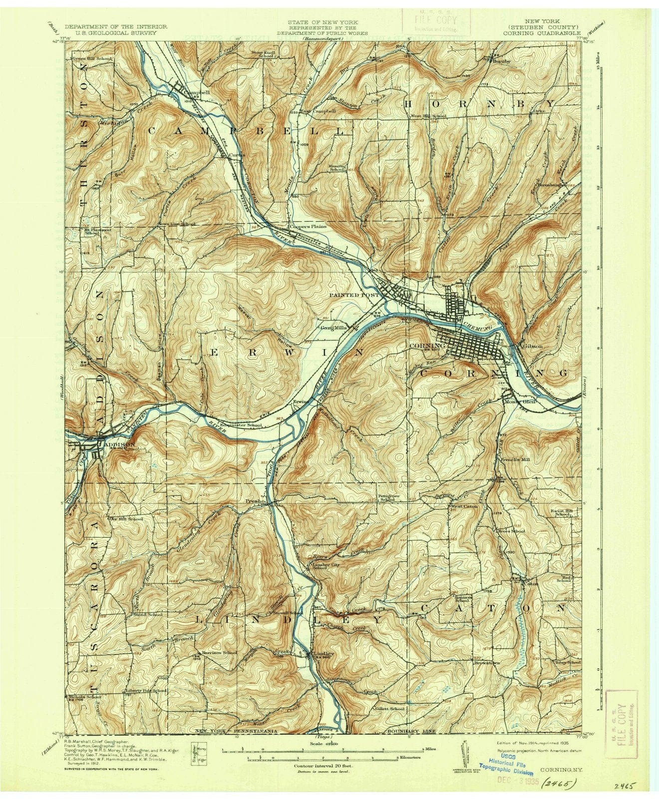 1914 Corning, NY - New York - USGS Topographic Map