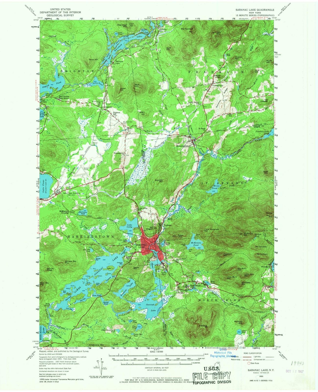 • 1955 Saranac Lake, NY - New York - USGS Topographic Map