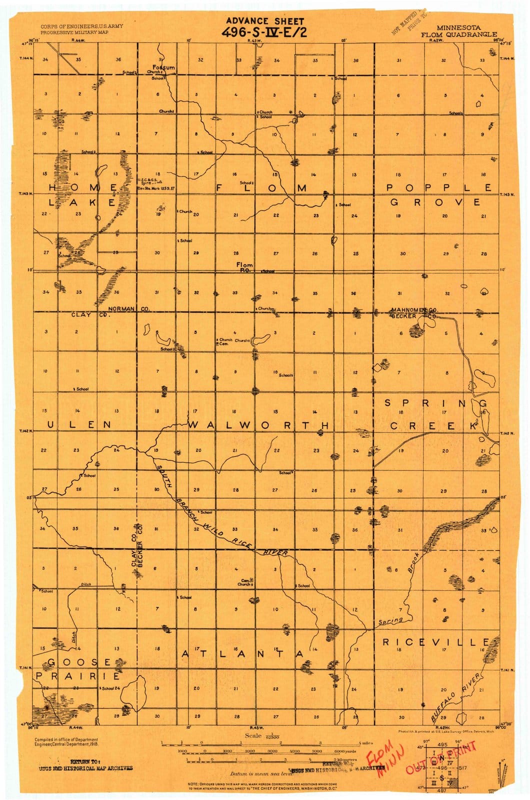 1918 Flom, MN - Minnesota - USGS Topographic Map
