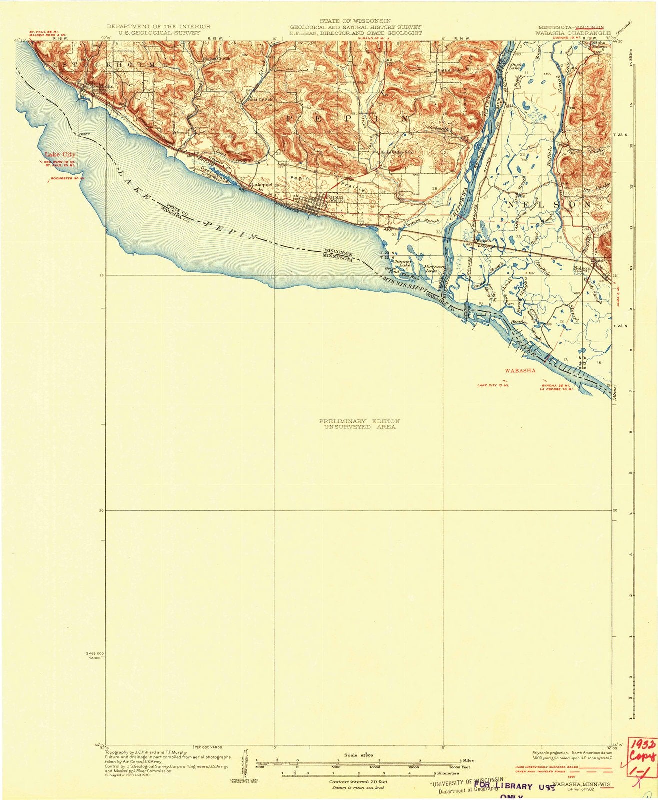 1932 Wabasha, MN - Minnesota - USGS Topographic Map