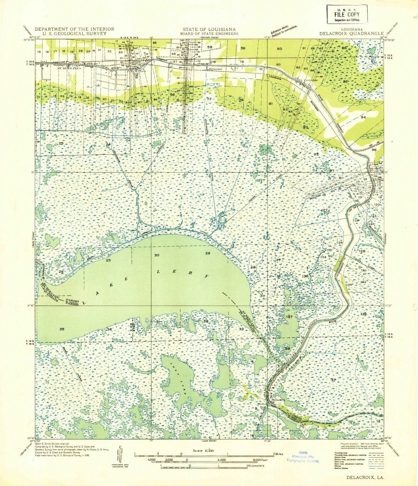 1935 Delacroix, LA - Louisiana - USGS Topographic Map