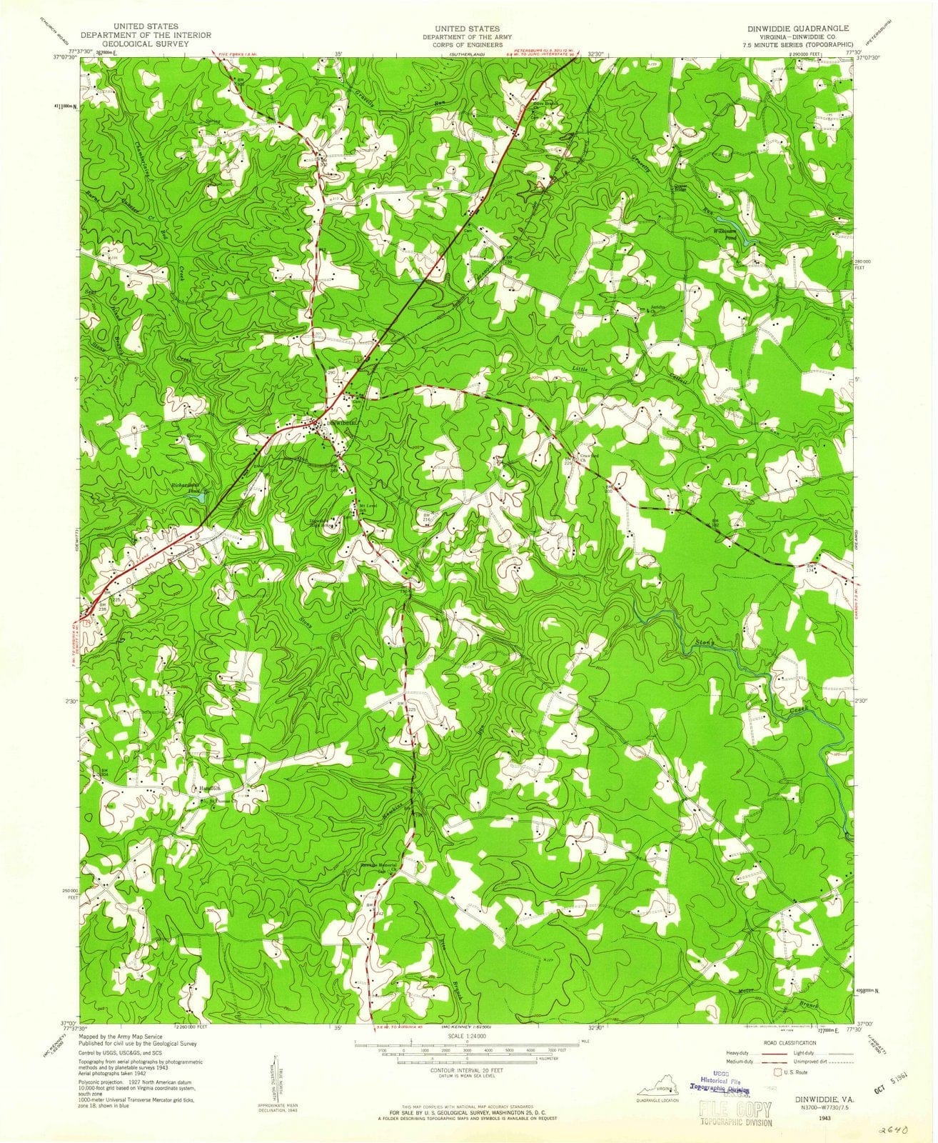 1943 Dinwiddie, VA - Virginia - USGS Topographic Map