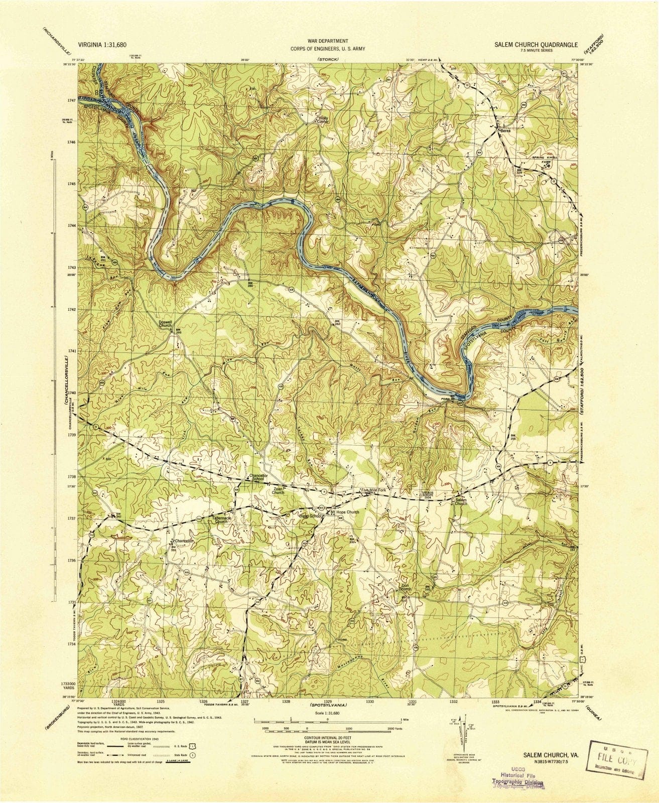 1944 Salem Church, VA - Virginia - USGS Topographic Map