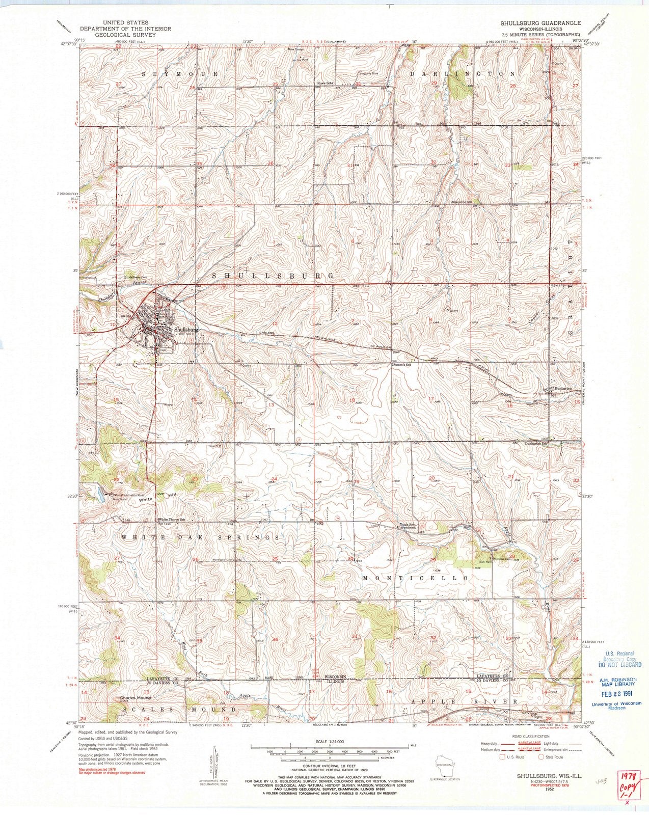 1952 Shullsburg, WI - Wisconsin - USGS Topographic Map