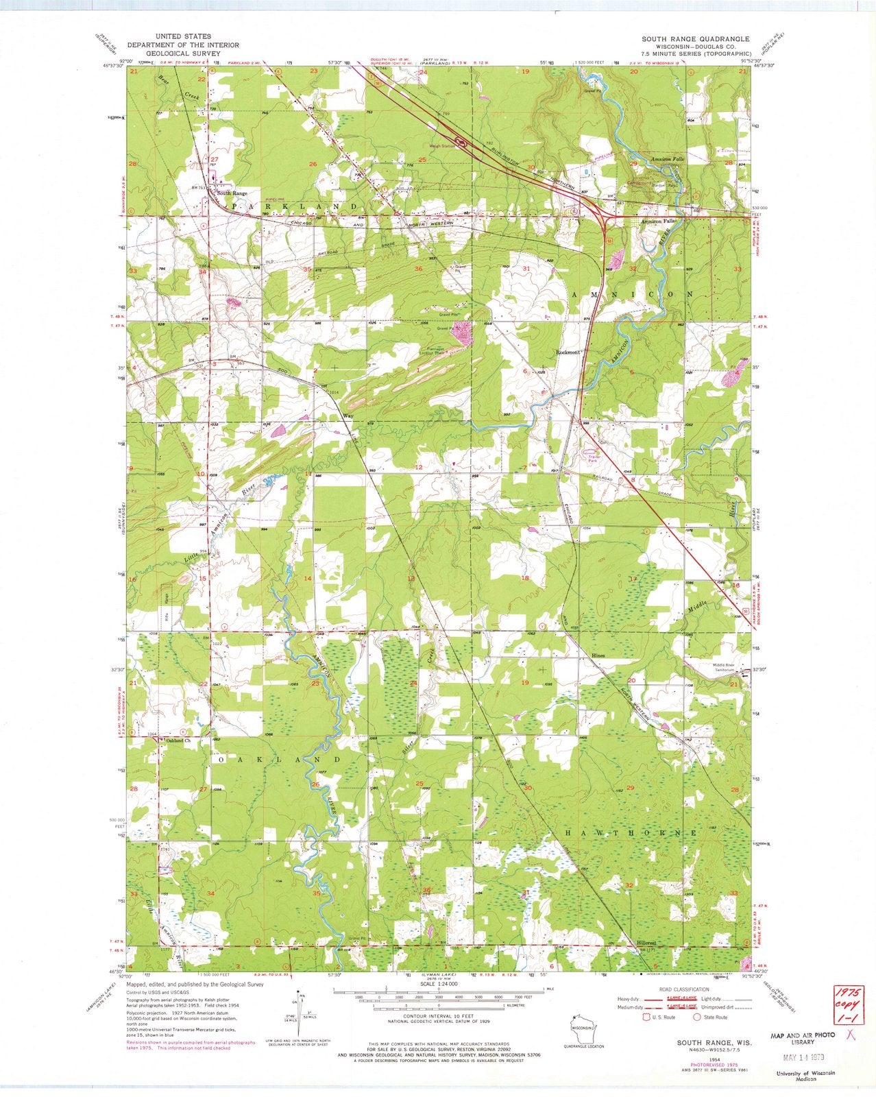 1954 South Range, WI - Wisconsin - USGS Topographic Map