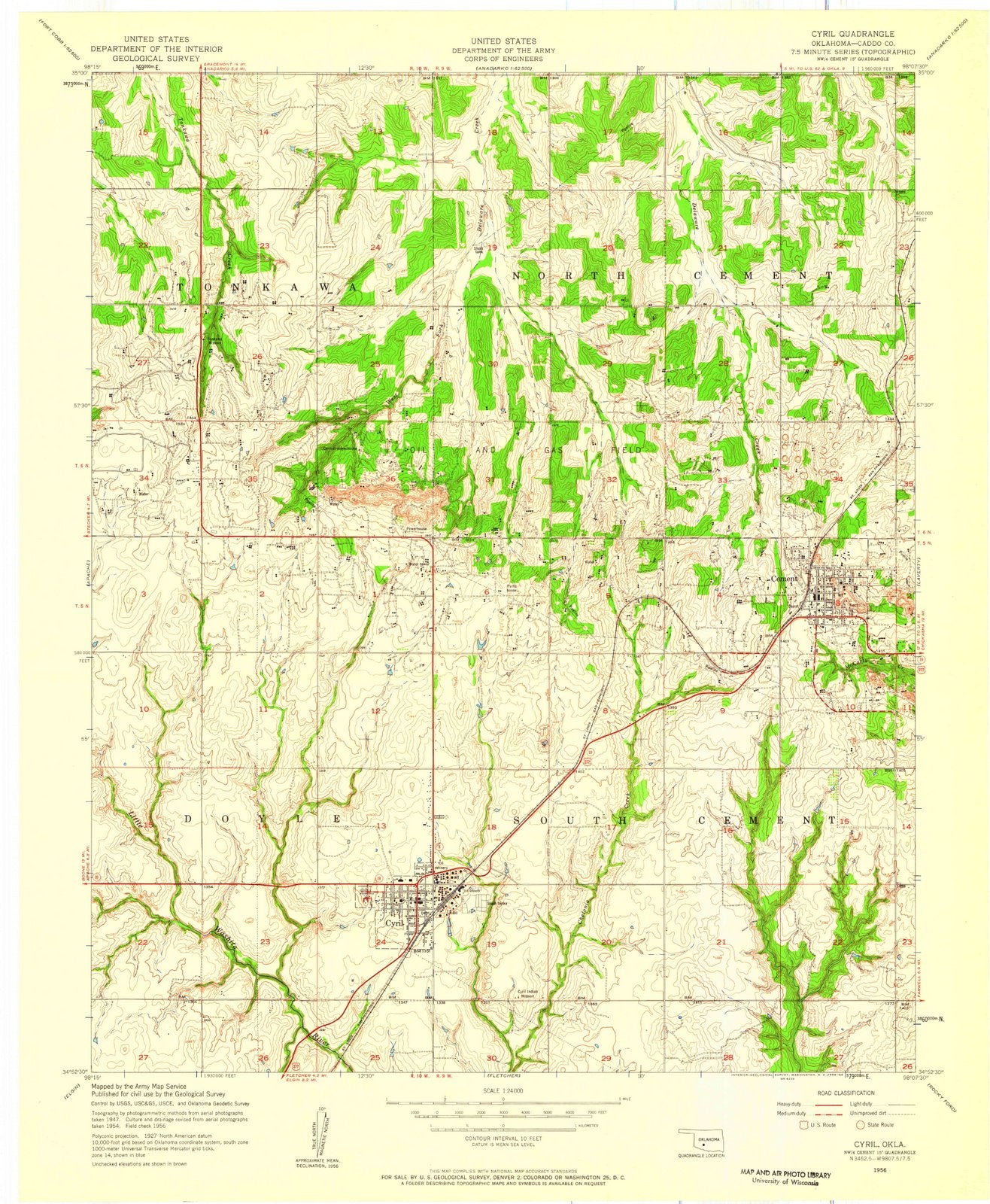 • 1956 Cyril, OK - Oklahoma - USGS Topographic Map