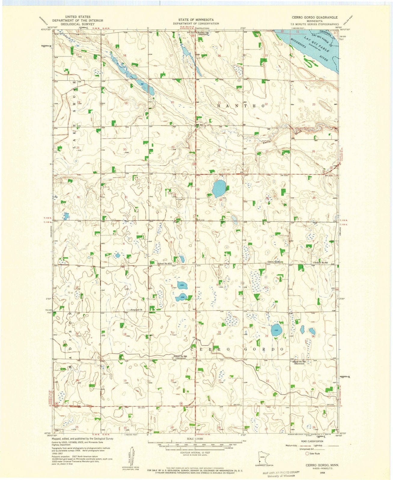• 1958 Cerro Gordo, MN - Minnesota - USGS Topographic Map